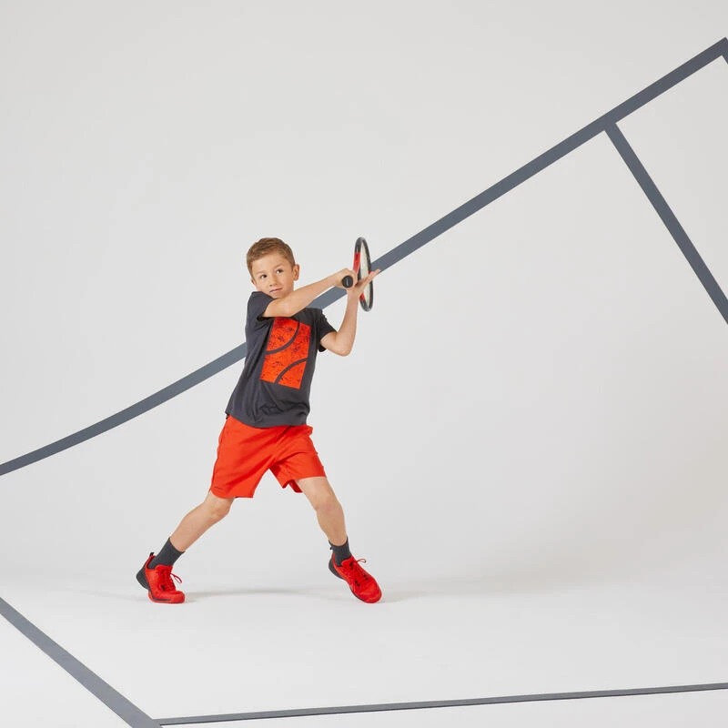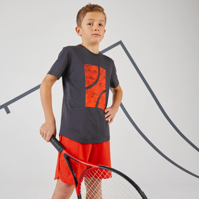 Nos concepteurs ont développé ce t.shirt pour la pratique du tennis par temps chaud, convient également aux autres sports de raquette.Ce t.shirt de tennis enfant offre un confort optimal. Vous apprécierez son tissu léger et respirant. Son style et son graphisme tennis séduiront votre futur champion.